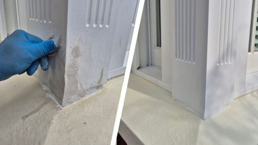 A bay sash window frame rotted just eight years after installation is cleaned, stabilised and rebuilt in a repair made by the homeowner leaving no trace of damage