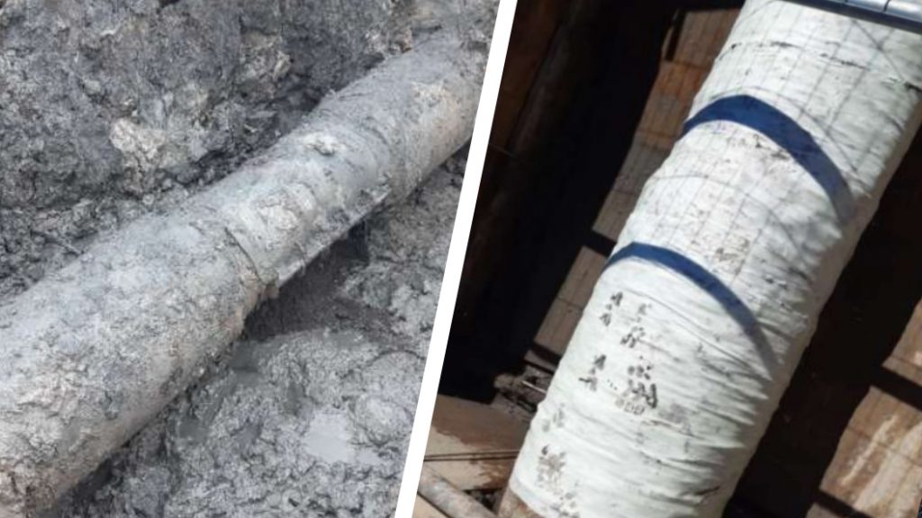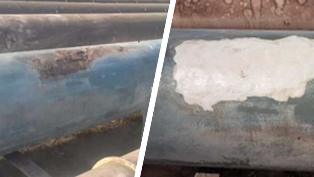 A pipe carrying natural gas in a combined heat and power system is refurbished after water trapped between the line and a badly installed PVC tape caused heavy corrosion