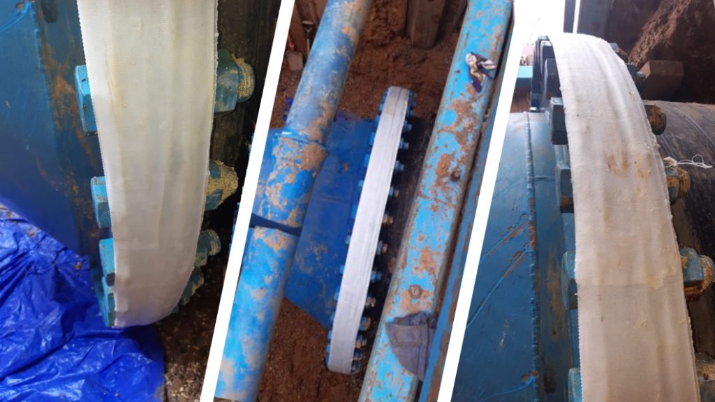 After a tree root penetrated an underground 1800mm pipe between flange plates, a wastewater treatment plant seal the line and protect it against future ingress